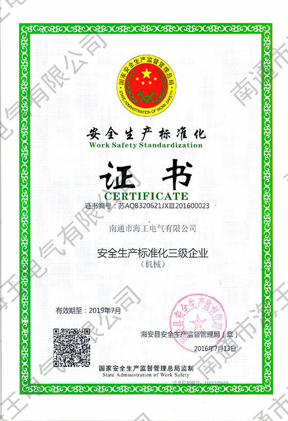 安全生產(chǎn)標(biāo)準(zhǔn)化證書
