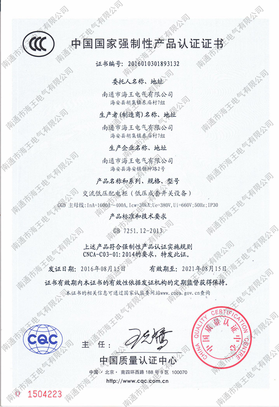 - 中國(guó)國(guó)家強(qiáng)制性產(chǎn)品認(rèn)證證書(shū)